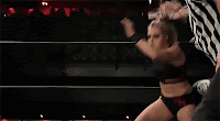 ELES LEVANTAM RHEA QUE ESTÁ ATORDOADA, ELA COLOCA SHIRAI EM UM RIPTIDE... DDT BY IO SHIRAI! SHIRAI USA SUAS ULTIMAS FORÇAS E ATINGE RHEA COM UM DDT!